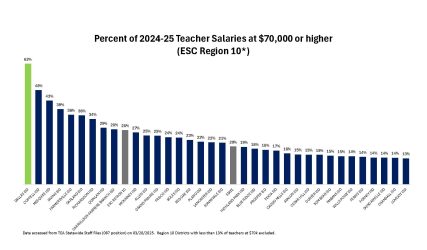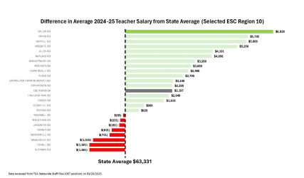 Statewide teacher compensation information, made available in March annually by the Texas Education Agency, provides opportunity for the district to analyze current 2024-2025 base salary data across districts, ESC regions, and the state for nearly 376,000 teachers.