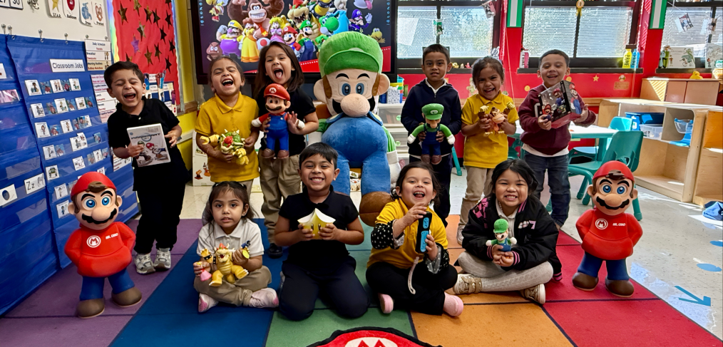 When students stand before the large Luigi plush toy, each with a book in hand, it makes reading an exciting and interactive experience, Cano said. He has also connected other lessons to Mario.