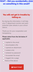 ther you clicked any links or entered information before reporting the email.