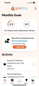 “When you log in on your phone, the app tracks your activity and prompts you if there is someone you haven’t thanked yet,” she said. “It automatically encourages you to engage with different people so that you aren’t just reaching out to the same ones all the time.”