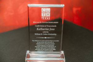 As the winner of the $20,000 Cotton scholarship, awarded yearly to one district team member by the Credit Union of Texas to honor the legacy of William H. Cotton for his 46 years of dedication and service to the district and the credit union. The deadline to apply for the scholarship is March 31.
