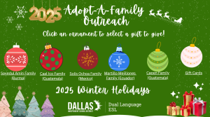 Each year during Christmas, the department hosts the adopt-a-family outreach event. It’s that special time of the year when the department comes together to support and uplift students and their families. These families are new incoming families to the district that enroll through the International Welcome Center.