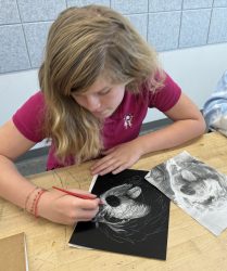 All students worked hard, but Elsa took particular care to apply James’ suggestions, ultimately giving the drawing of her pet doodle a lifelike quality.